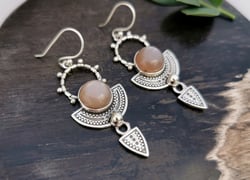 Boucles d'oreilles MILONGA Pierre de lune rose arg